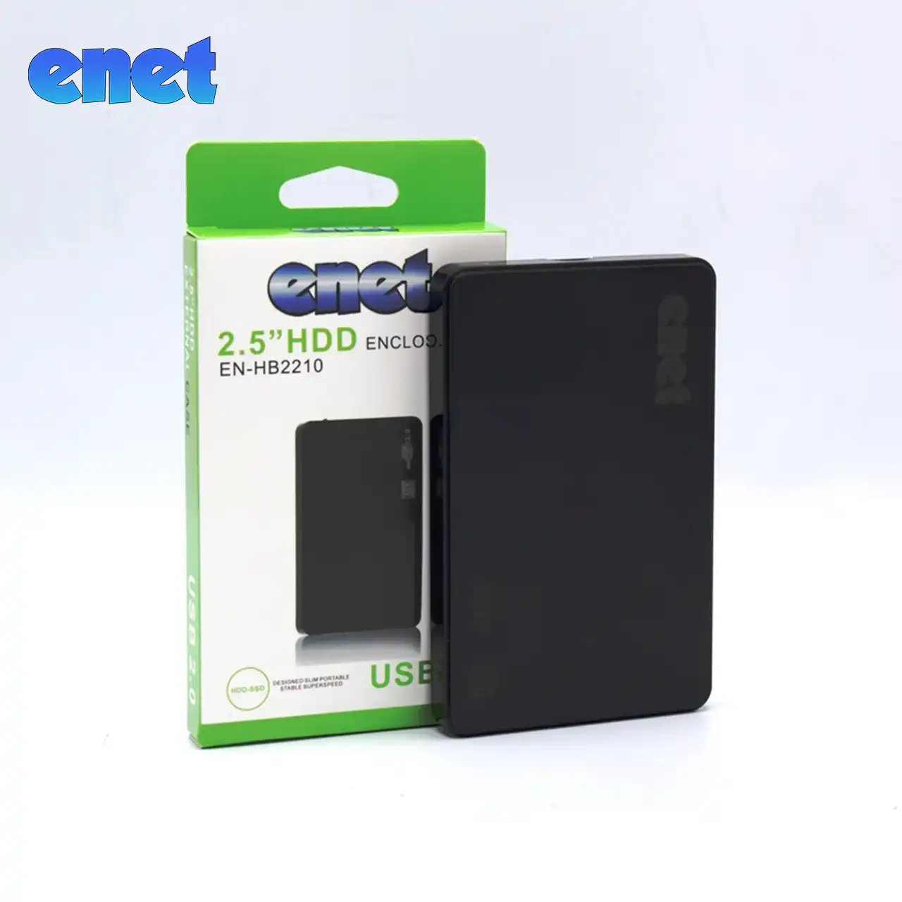 قاب EN-HB2210 از رابط USB 2.0 بهره می‌برد که سرعت انتقالی در حدود ۴۸۰ مگابیت بر ثانیه ارائه می‌دهد. این رابط برای استفاده‌های معمول مانند جابه‌جایی فایل‌های شخصی، فیلم و اسناد کاملاً مناسب است. داخل قاب، کانکتور SATA برای نصب مستقیم هارد لپ‌تاپی ۲.۵ اینچی طراحی شده و کابل USB همراه محصول امکان اتصال آسان به کامپیوتر و لپ‌تاپ را فراهم می‌سازد.